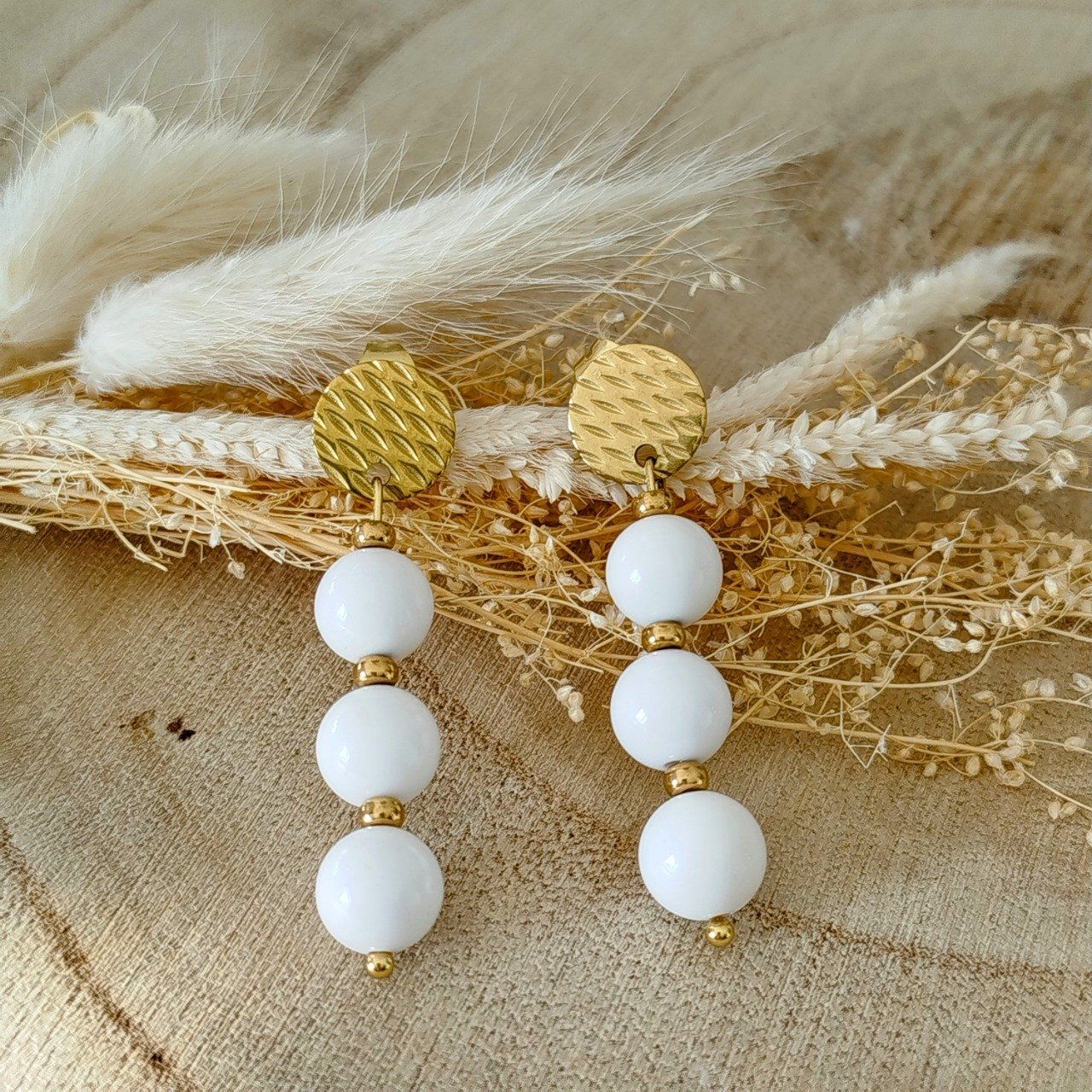 Boucles d'oreilles Agate blanche