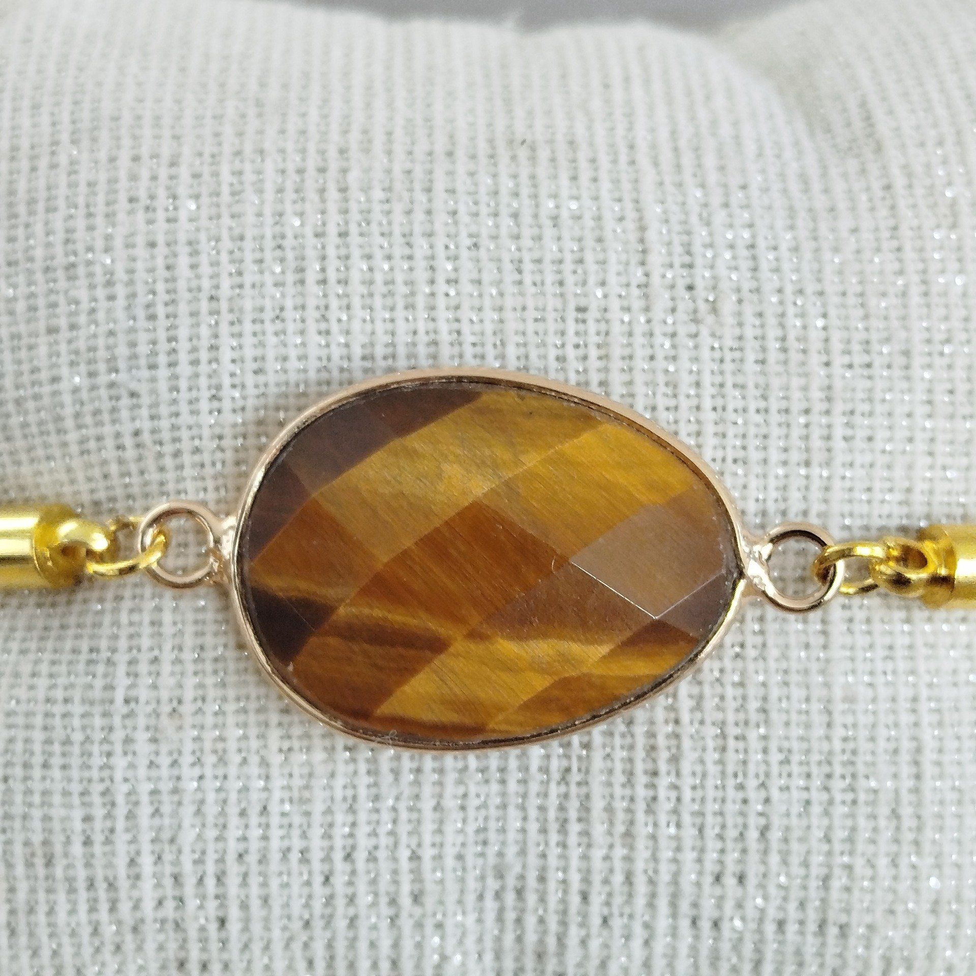 Bracelet cordon pierre à facette œil de tigre