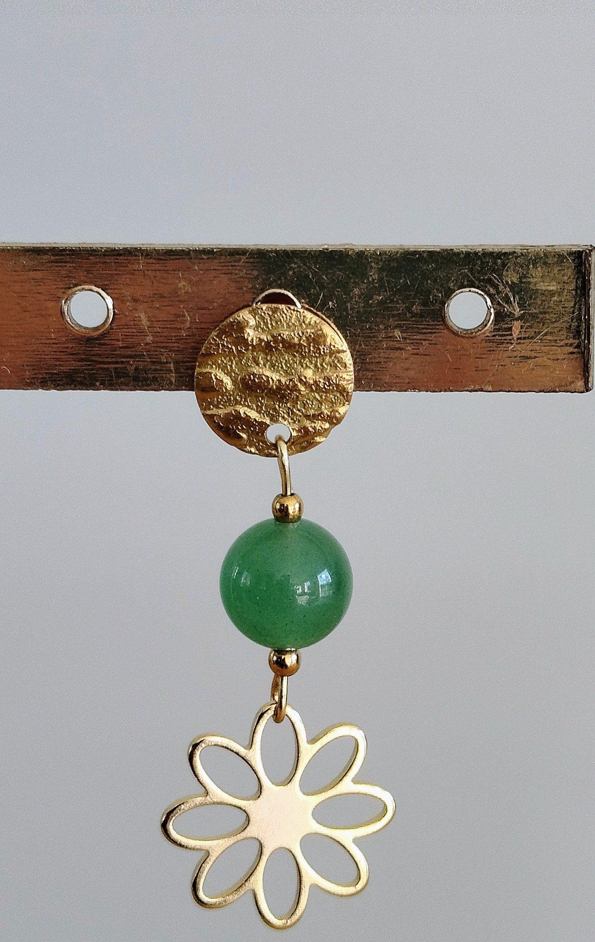 Collection aventurine verte boucle d'oreille et bracelet acier inoxydable doré