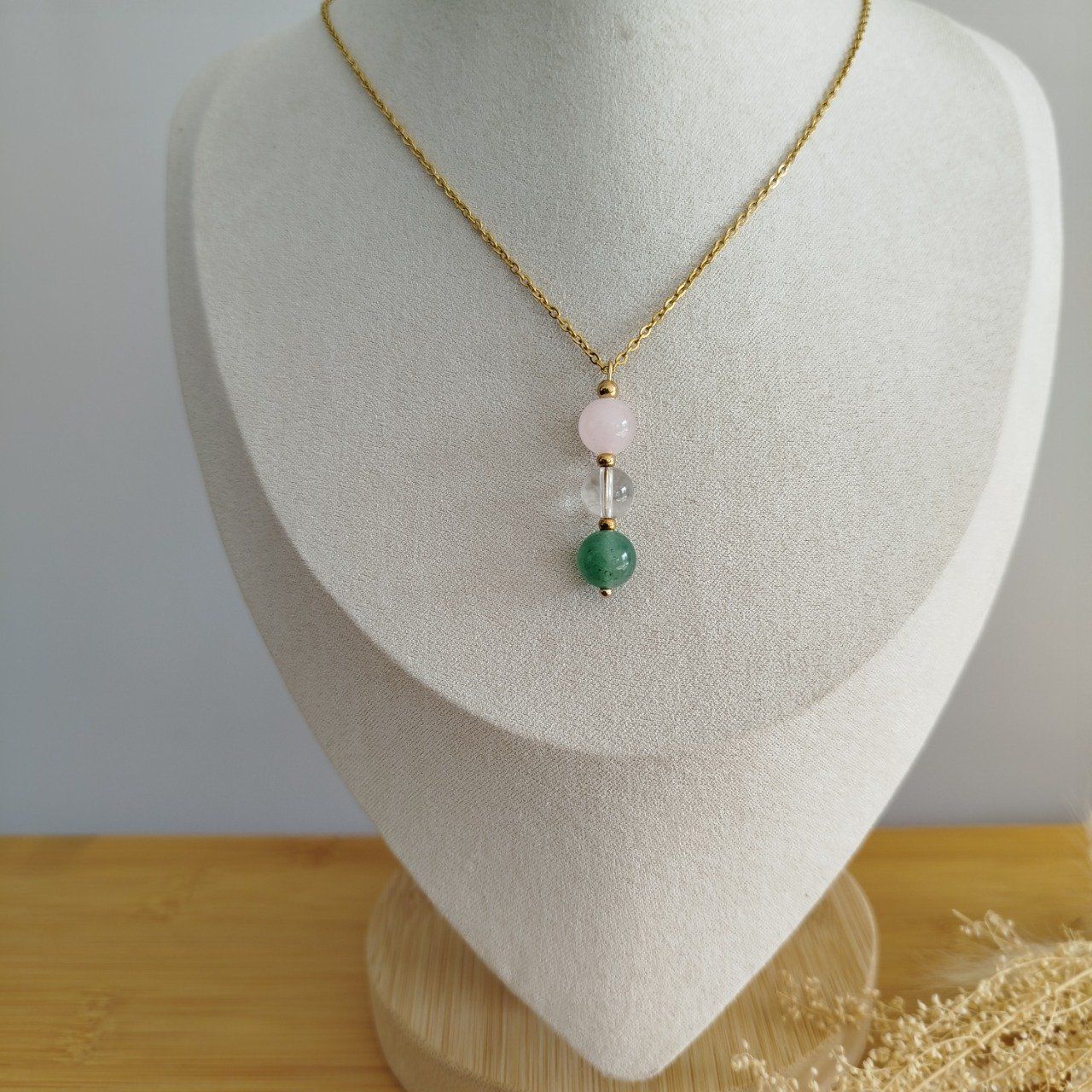 Collection en quartz rose et acier inoxydable Collier réglable Pierre naturelle